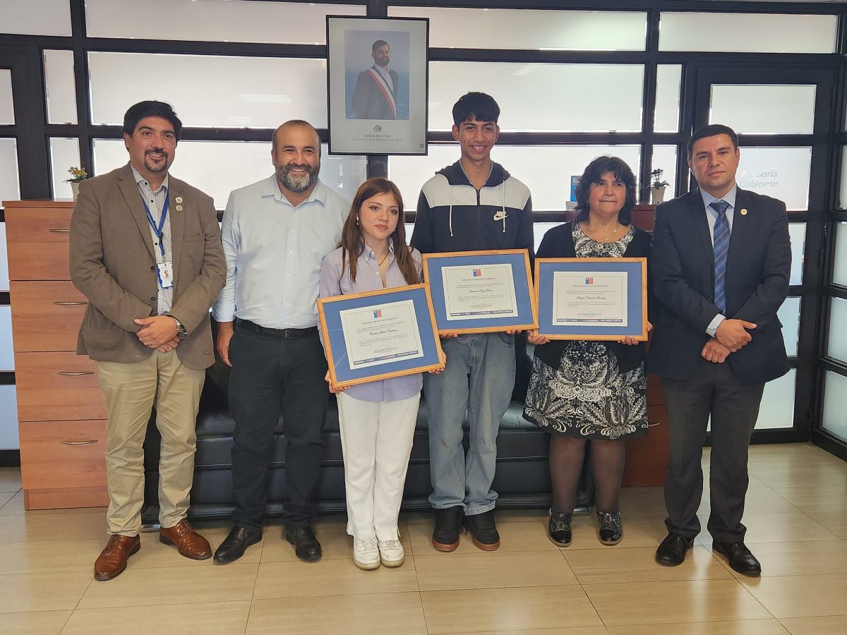 Estos jóvenes, junto a su profesora Olimpia Cifuentes, desarrollaron la investigación “Acumulación de aminoácidos tipo micosporina (MAAs) en las macroalgas Rodofitas Palmaria decipiens e Iridaea cordata extraídas de la Isla Rey Jorge en condiciones naturales y cultivos algales”. Trabajo que además fue reconocido el delegado presidencial, Eduardo Pacheco y el seremi de Educación, Carlos Benedetti.
